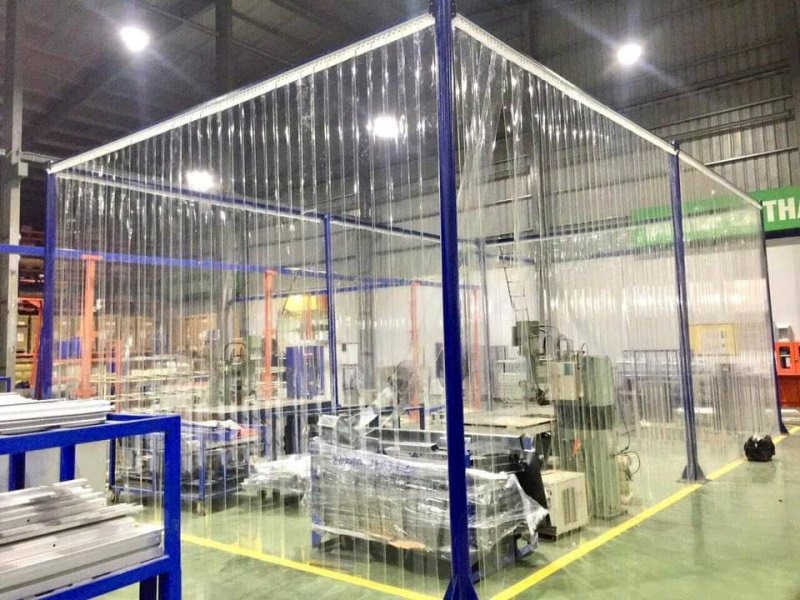 • Nhà xưởng, kho hàng: Cần khả năng ngăn bụi, giảm tiếng ồn và không cản trở di chuyển. Rèm trong suốt thường được ưa chuộng để vừa phân chia không gian vừa giữ tầm nhìn.